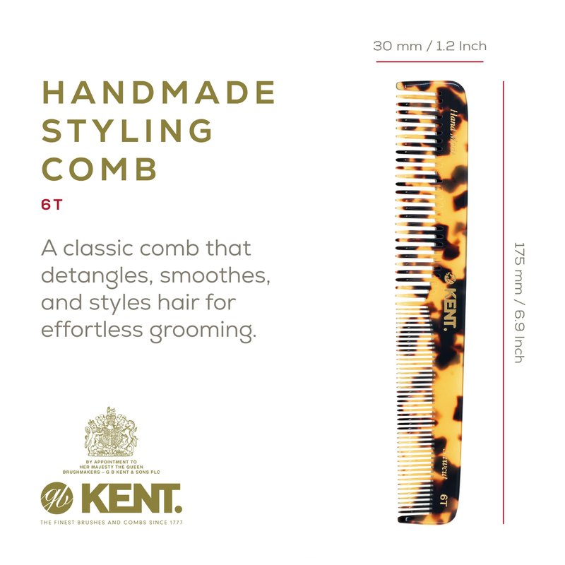 Kent 6T TY Fine Tooth Comb and Wide Tooth Hair Comb - Handmade Styling Comb for Hair Care, Barber Combs, and Beard Combs For Men - Hair Styling Grooming Hair Combs for Men, Women and Kids - Hair Care