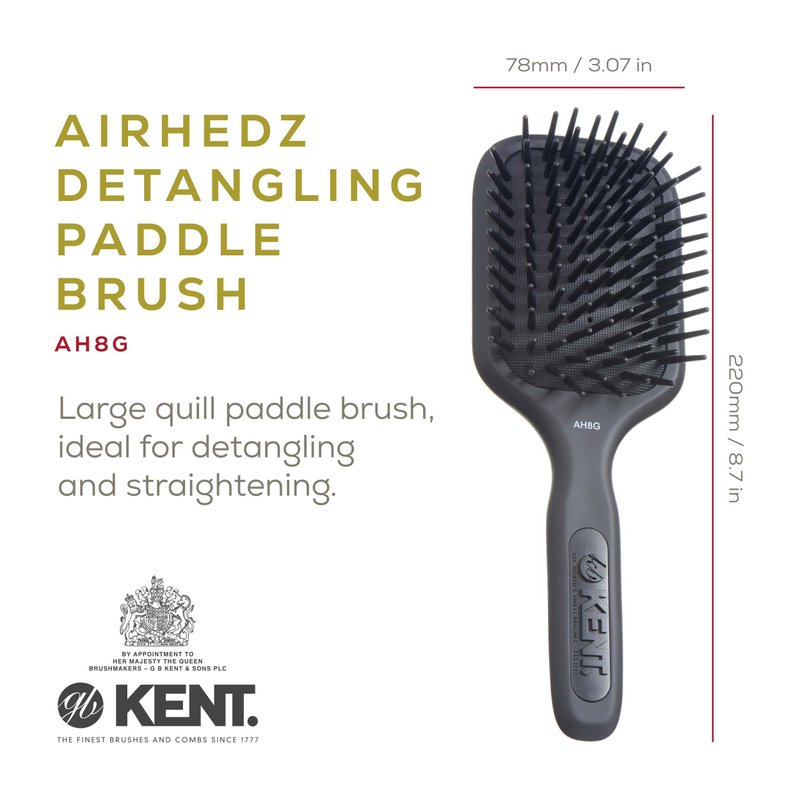 Kent AH8G Airhedz Cushion Paddle Brush - Hair Detangler and Growth Stimulator for Thick, Curly Hair