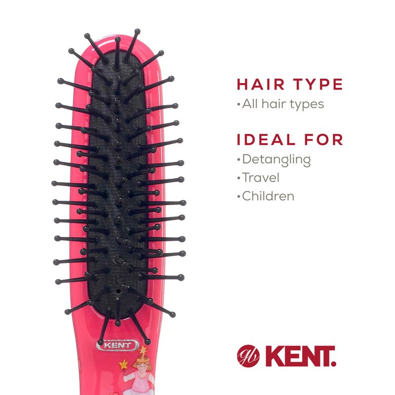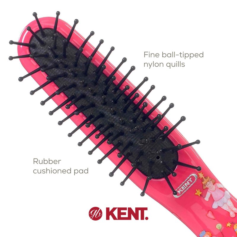 - Detangler brush for kids with 0.75" gentle plastic quills perfect for infant hair brushes and easy to grip design ideal for kids brushes for hair. Kids hair brush featuring a beautiful mischievous cats pattern adding personality to this mini hair brushes