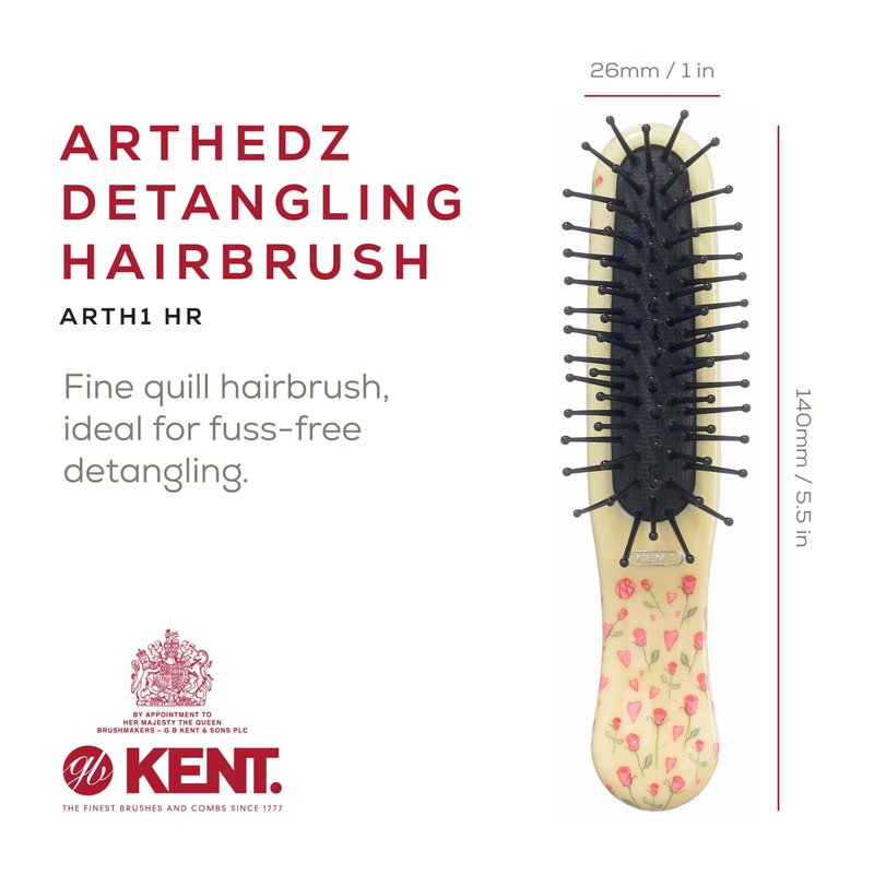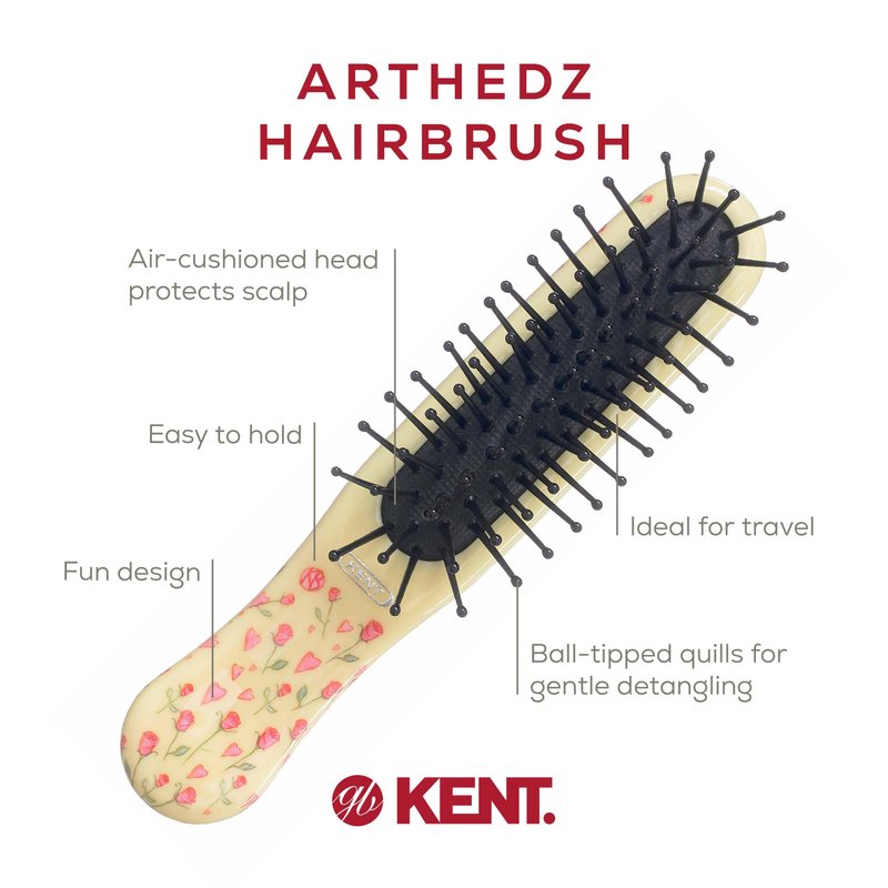 Kent ARTH1 Baby Hair Brush, Hair Brush for Kids, Small Brushes for Hair and Travel Brush Hair Detangler with Non-Scratch Nylon Bristles for Gentle Detangling Arthedz (Hearts N' Roses Pattern)