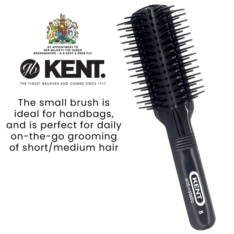 Kent AS8 Anti Static Hair Brush Travel Brush Small Hair Brush for Smoothing, Straightening, and Curling Short or Medium Hair. 7-Row Mini Hairbrush Anti Static for Hair Frizz Free Brush Made in England
