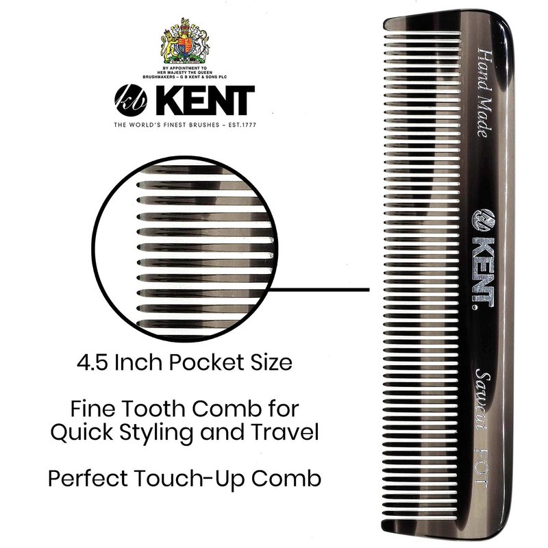 ABOUT KENT HANDMADE COMBS: Kent Handmade Combs for Men and Women Range are of excellent quality. Kent hand sawn combs are cut from large sheets of cellulose acetate rather than moulded, producing a truly gentle comb whereas moulded combs often snag and damage the hair. This material is tactile, flexible and strong. They glide effortlessly through hair without scratching to damaging the hair or scalp. Kent combs have rounded teeth which ensure a smooth and comfortable action. The range includes designs for thick and fine hair, in varying sizes, for both men and women. About Kent: Founded in 1777, Kent Brushes is the world's oldest hairbrush manufacturer and has maintained its British traditions of producing the world's finest hairbrushes and combs ever since. Making the best quality brushes for over 230 years and creating over 250 products. Quality, design and attention to detail go into each brush. They have been the holders of The Royal Warrant through the last nine consecutive reigns of British monarchy. The company continues to retain the craftsmanship and unprecedented quality that is Kent's reputation.Even in today's fast moving, mass-produced assembly lines, they are proud to still be manufacturing many of their original brushes by hand.