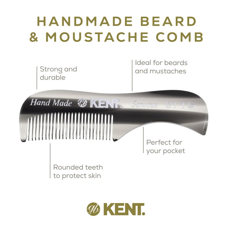 Kent Men's Beard Grooming Kit - Handmade Pocket Comb Set for Travel and Home Care, Mustache and Beard Combs