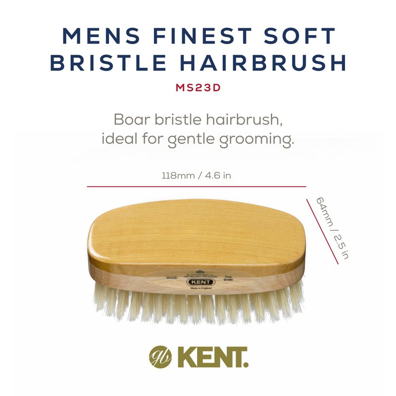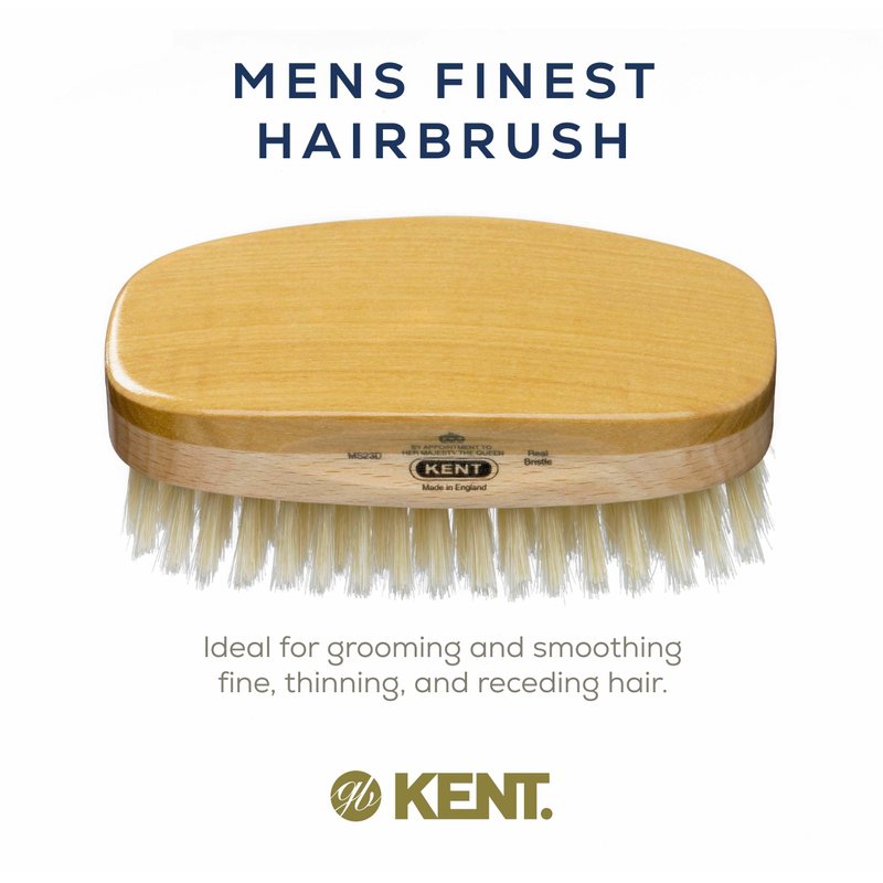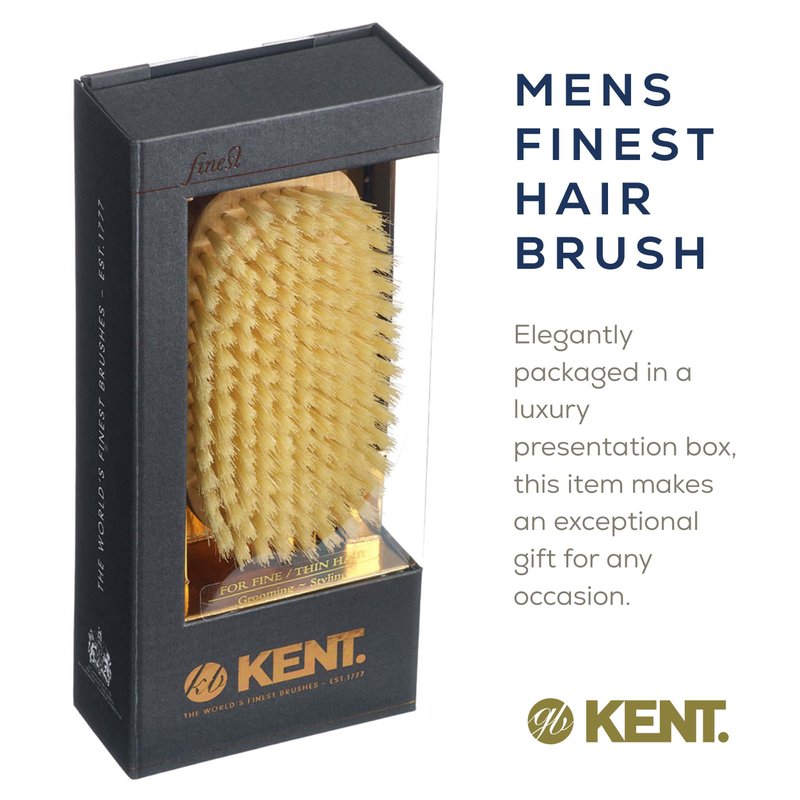 WHAT HAIR LENGTH & TYPE? - Suitable for all hair and beard lengths. The soft bristles are ideal for sensitive scalps or thinning hair. ADVANTAGES: Brushing with natural bristles improves circulation in the scalp which is perfect for stimulating the hair's natural oils to be distributed through the hair keeping it clean, shiny & naturally conditioned. BENEFITS: For healthier and naturally shiny hair, this lifetime lasting travel hairbrush will make it easy for you to tame and groom all your hair and beard needs. ABOUT KENT’s - FINEST MEN LINE: Designs come in various shapes, oval, rectangular and both with handles. Hand finished to perfection and made from finest timbers in the world. The natural bristles are carefully sourced, and tailor cut specifically, to offer different strengths for thick, medium, fine or receding hair. Finest Men's brushes include the Kent MC4, Kent MG3, Kent MS11, Kent MN11, Kent MS23D, Kent MS23, Kent MG2, Kent MN1B, Kent OG2, Kent OG4, Kent OS11, Kent OE1, Kent OG1, Kent OG3, and the Kent OS18.
