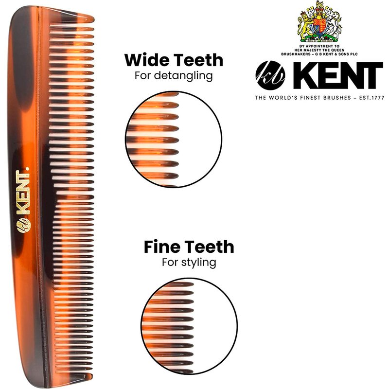 Pocket Comb: 5.1 Inch Small Tortoise Shell finish Limited Edition. ABOUT KENT'S HANDMADE COMBS: Kent Handmade Combs for Men and Women Range are of excellent quality. Kent hand sawn combs are cut from large sheets of cellulose acetate rather than moulded, producing a truly gentle comb whereas moulded combs often snag and damage the hair. This material is tactile, flexible and strong. They glide effortlessly through hair without scratching to damaging the hair or scalp. Kent combs have rounded teeth which ensure a smooth and comfortable action. The range includes designs for thick and fine hair, in varying sizes, for both men and women. About Kent: Founded in 1777, Kent Brushes is the world's oldest hairbrush manufacturer and has maintained its British traditions of producing the world's finest hairbrushes and combs ever since. Making the best quality brushes for over 230 years and creating over 250 products. Quality, design and attention to detail go into each brush. They have been the holders of The Royal Warrant through the last nine consecutive reigns of British monarchy. The company continues to retain the craftsmanship and unprecedented quality that is Kent's reputation.Even in today's fast moving, mass-produced assembly lines, they are proud to still be manufacturing many of their original brushes by hand.