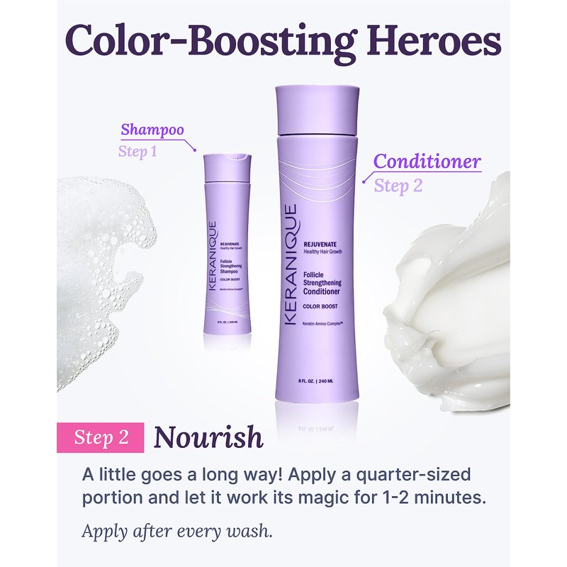 - ENHANCE SHINE & EXTEND COLOR: Preserve your color and rejuvenate your locks with the Keranique moisturizing, color-boosting conditioner; Revitalize heat-weary, chemically treated hair while preventing color washout and dryness