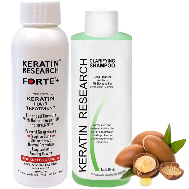KERATIN RESEARCH Brazilian Keratin Hair Treatment Complex Blowout 2x 120ml LONG Lasting Keratin Treatment with Argan Oil Straightening Smoothing Professional Results Keratina (FORTE)