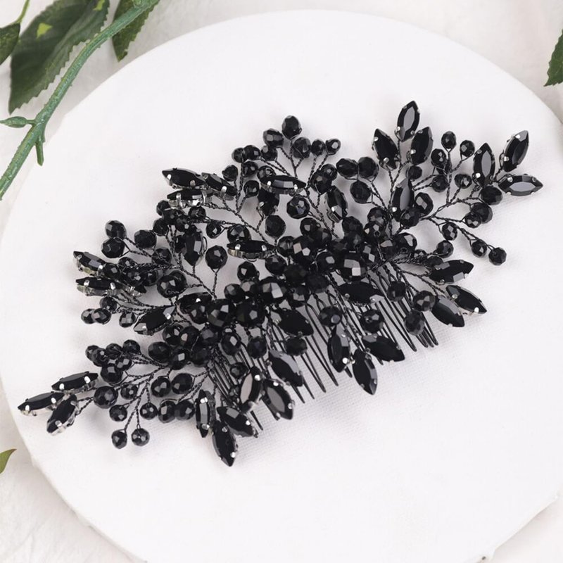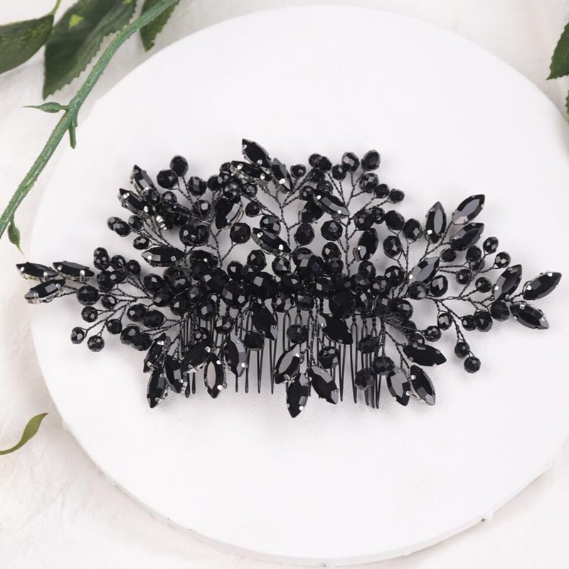 Kercisbeauty Black Crystal Beads Statement Big Hair Comb for Wedding Brides Women Girls Handmade Hair Pieces Jewelry Halloween Punk Hair Band