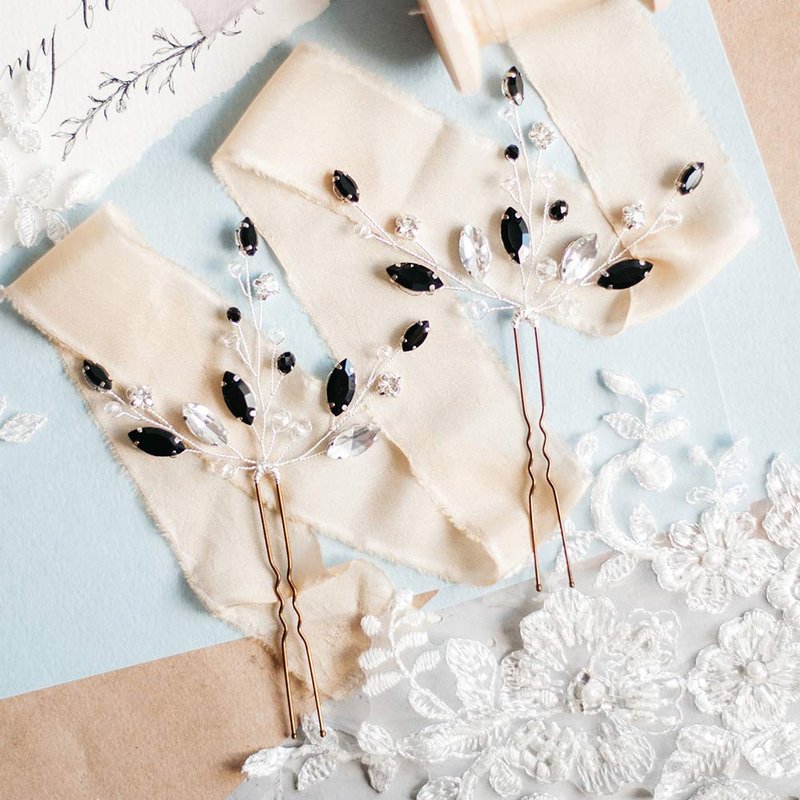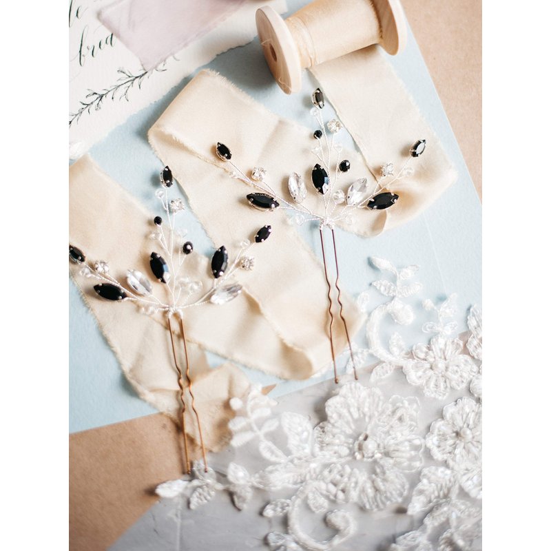 Kercisbeauty Black Hair Pins for Bride Wedding Hair Accessories for Brides Bridesmaid Handmade Hair Piece for Women Girls Party Jewelry (Set of 2) (Black)