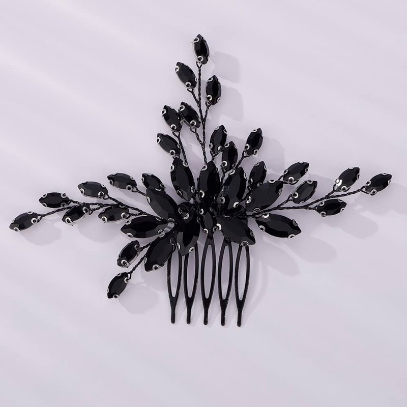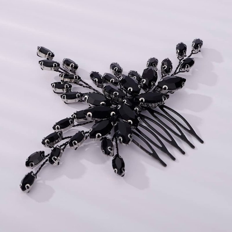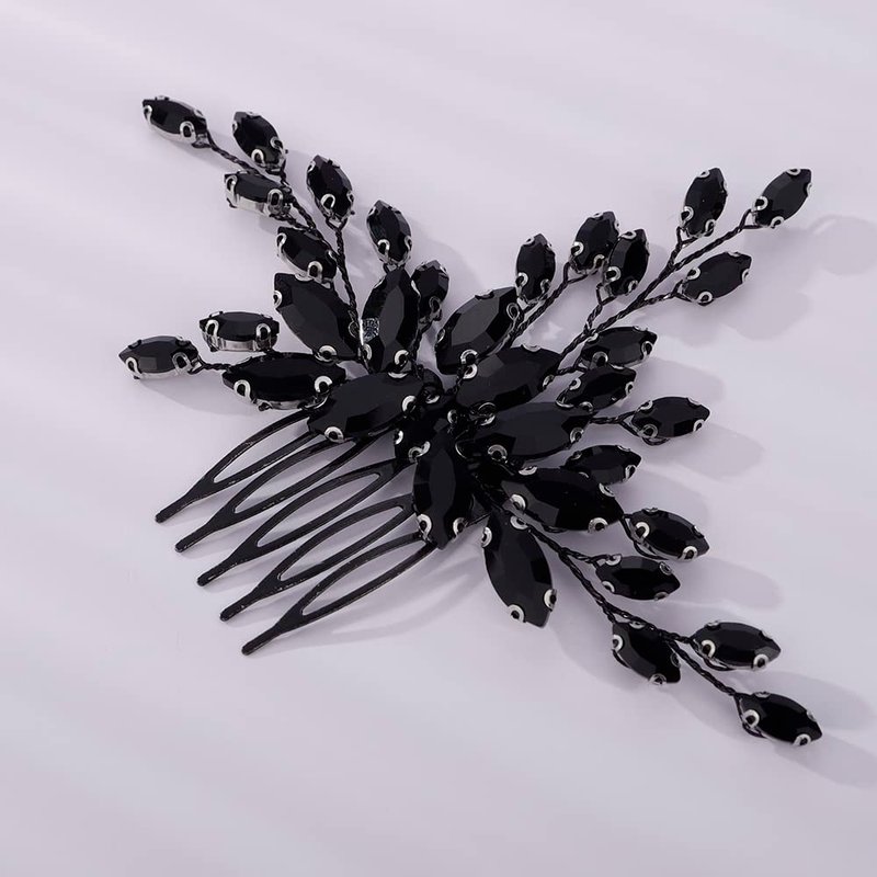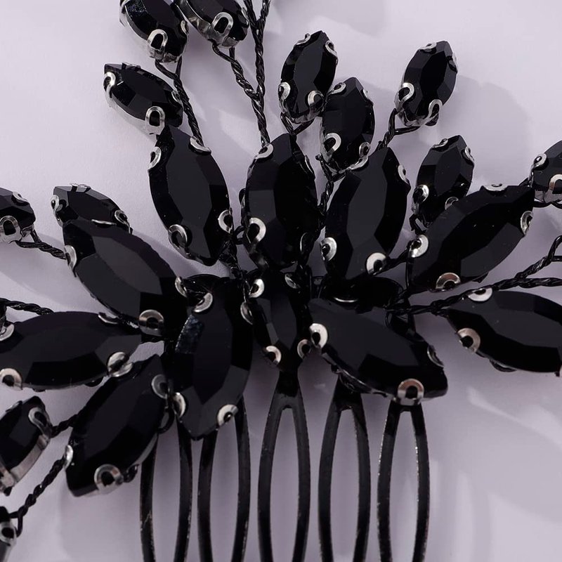 Kercisbeauty Black Rhinestones Beads Hair Comb Side Hair Pieces for Wedding Brides Bridesmaid Women Handmade Jewelry