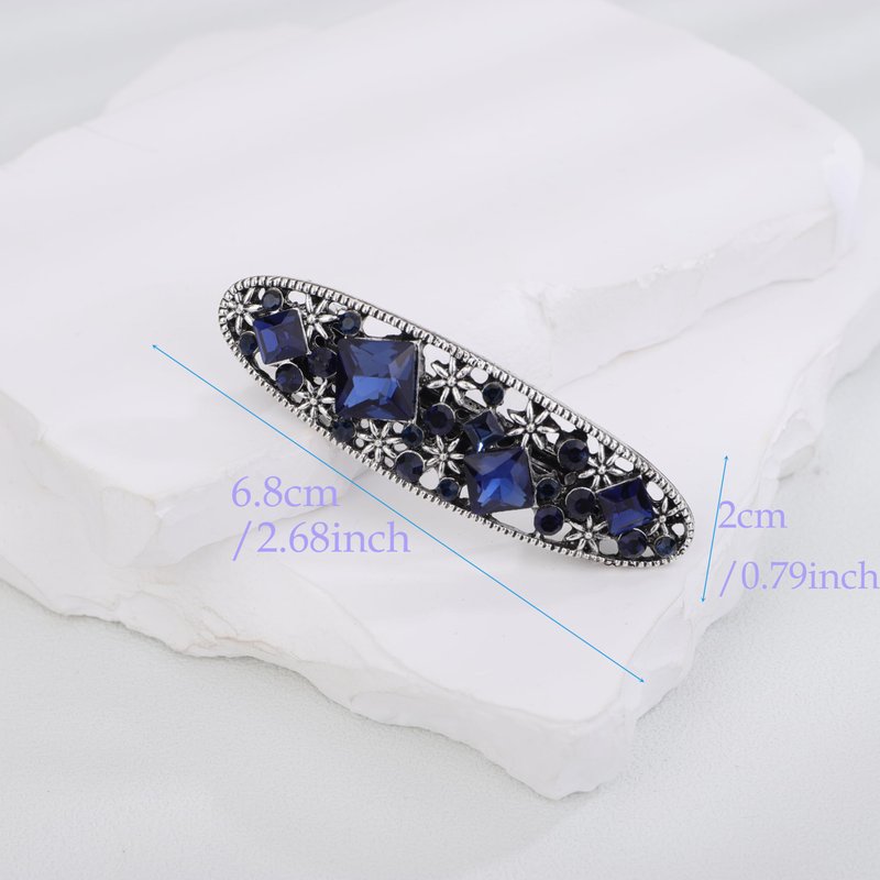 Kercisbeauty Blue Crystal Beads Vintage Hair Barrettes for Women Girls Thin Hair Jewelry Wedding Bridal Cute Hair Piece (Oval)