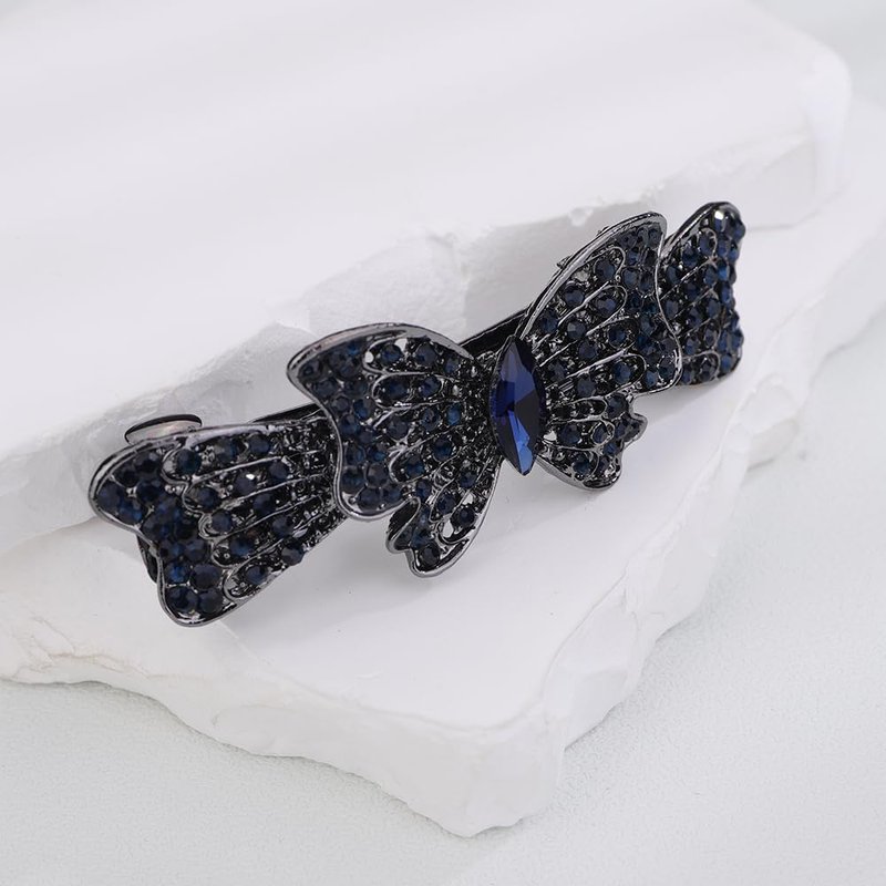 Kercisbeauty Bow Tie Blue Crystal Beads Hair Barrettes Rhinestones Beads Vintage Hair Clasp Thin Hair Jewelry (Butterfly)