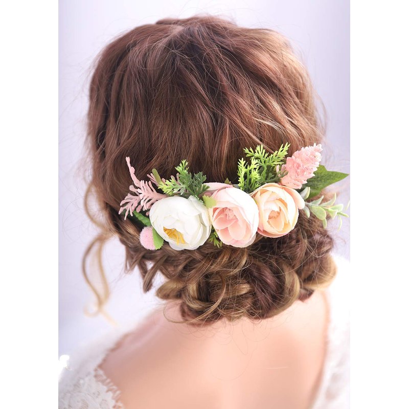 Kercisbeauty Pink and White Hair Comb Prom Girl Floral Headpiece Wedding Brides Bridesmaids Flower Headband Handmade Soft Headband Flower Girl