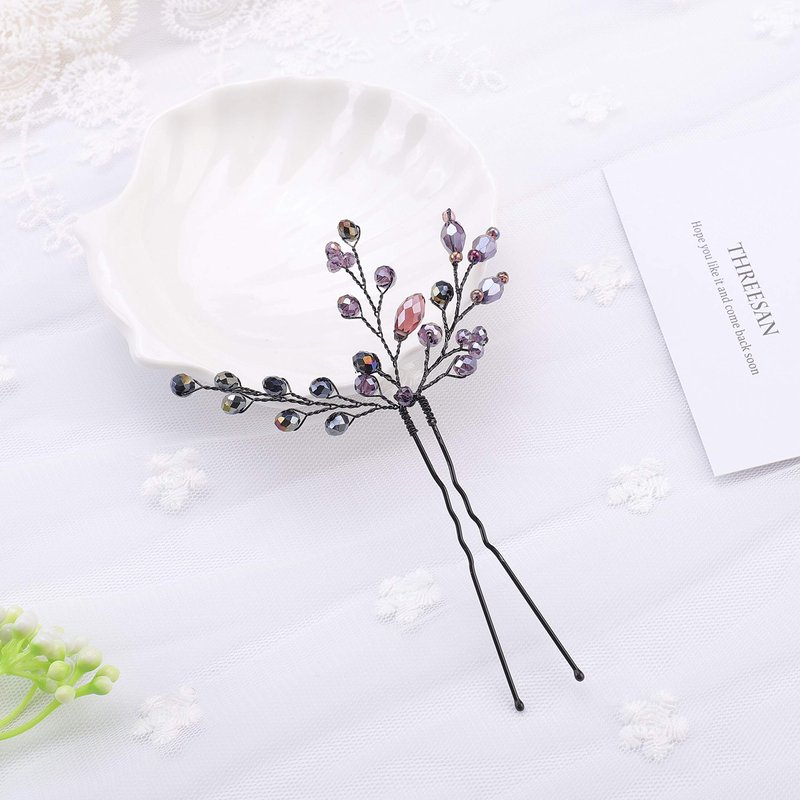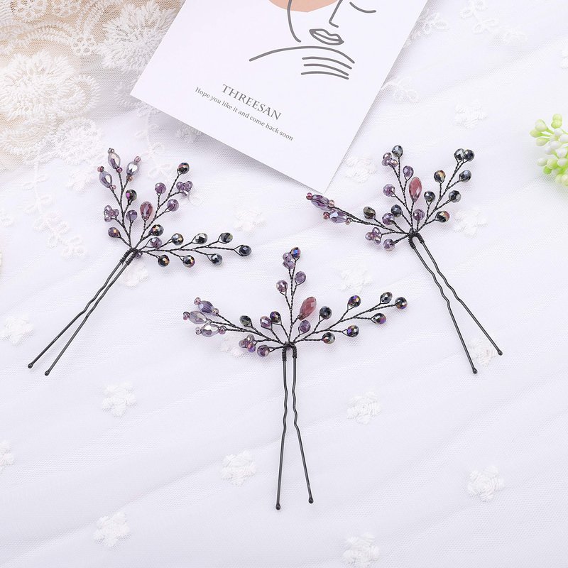 Kercisbeauty Purple Beaded Hair Pins for Wedding Bride Bridesmaid Bridal Violet Hair Piece Dancing Prom Accessory for Teen Girls Women Evening Party Pack of 3