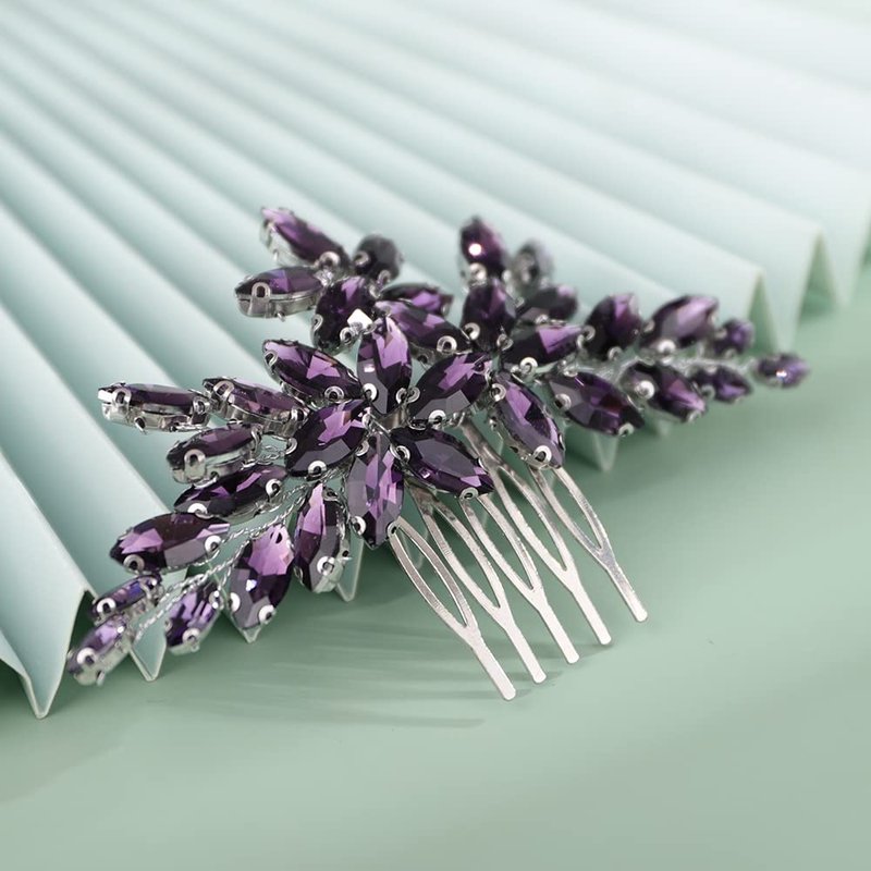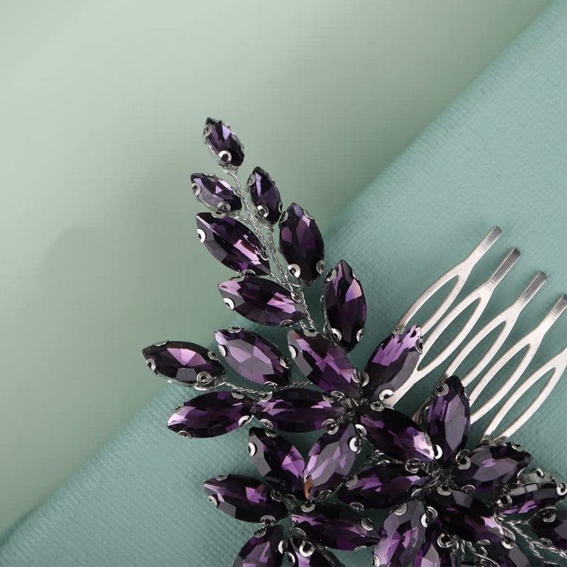 Kercisbeauty Wedding Bridal Purple Crystal Vintage Gold Hair Comb for Women Girls Ladies Special Occasion Dressy Handmade Hair Jewelry (Violet)