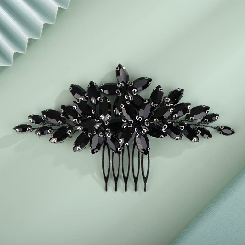 Kercisbeauty Wedding Bridal Small Cute Black Crystal Hair Comb Side Headpiece for Women Girls Halloween Party Costume Hair Accessories (Black)