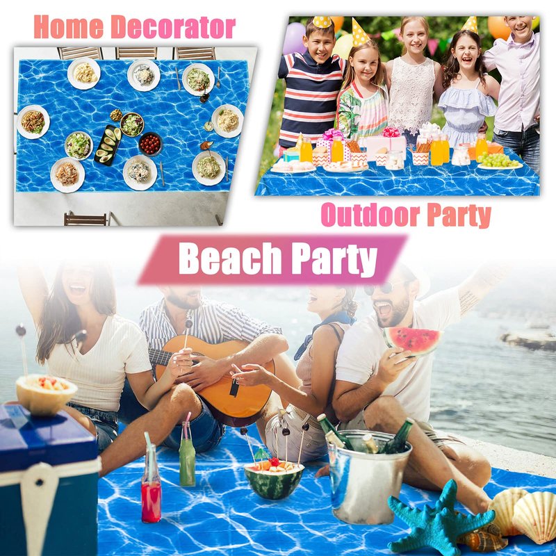 - Proper size: The Ocean Rectangle Tablecloth measures approximately 54 x 108 inch, which is the right size for most people will be seated on; During a beach party or picnic, can be placed on the beach or lawn and can hold a lot food