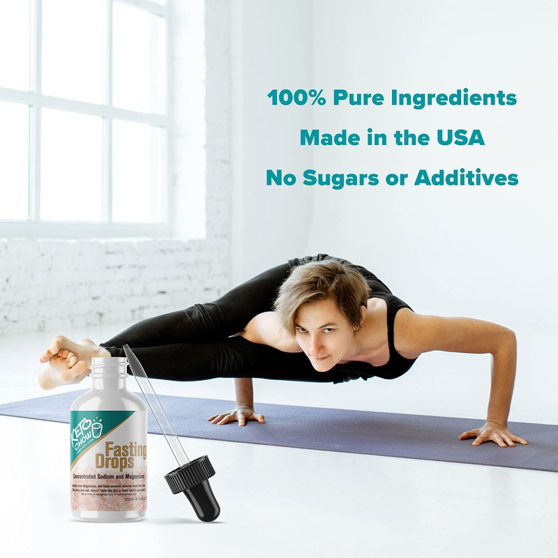 - Fasting Drops by Keto Chow Are Made Pure, No Artificial Ingredients, Colors, Caffeine, or Dyes. These fasting drops are made with a specific blend of the body’s much-needed electrolytes and trace minerals from the Great Salt Lake. Mostly sodium, these drops are delivered in their most bioavailable form, no artificial ingredients.