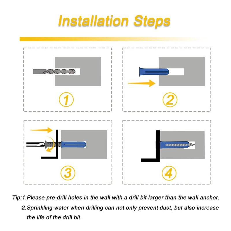 - 【Versatile Applications】With two sizes of masonry anchors included, our kit is perfect for mounting door panels, doorbells, picture frames, shelves, and more on brick or concrete walls.