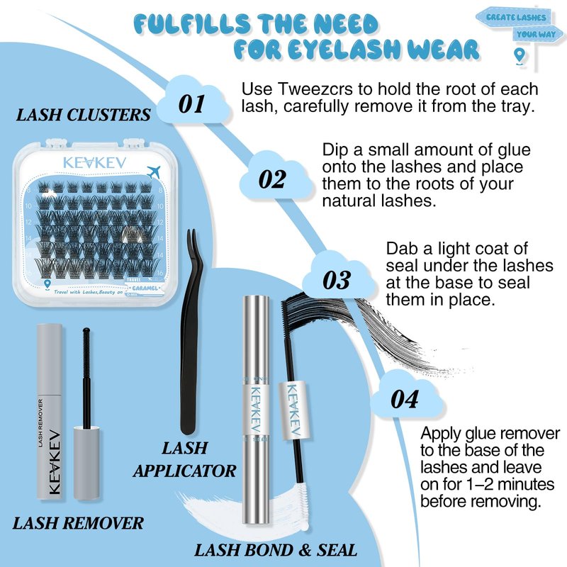 KevKev Lash ExteKevKev Lash Extension Kit DIY Eyelash Extension Kit Wispy Lash Clusters Kit D Curl Individual Lashes Eyelash Clusters with Lash Bond and Seal Lash Remover Lash Tweezers for Self Application on Travel nsion Kit DIY Eyelash Extension Kit Wispy Lash Clusters Kit D Curl Individual Lashes Eyelash Clusters with Lash Bond and Seal Lash Remover Lash Tweezers for Self Application on Travel