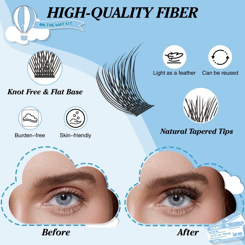 - Upgrade Lash Clusters: The cluster eyelashes are made of imported PBT fiber, which makes them softer, lighter, durable and long lasting. The slimmer lash band can seamlessly fit your eye shape and bring you a comfortable wearing experience.