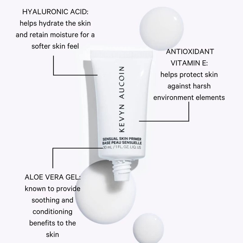- Kevyn Aucoin Sensual Skin Primer: Same formula, new delivery. This lightweight, hydrating primer helps even out skin texture and blurs the appearance of pores to create the perfect canvas for makeup on all skin tones and types. The gel texture feels fresh upon application and is fast absorbing for a silky smooth finish that preps skin for makeup application and extends the wear of makeup.