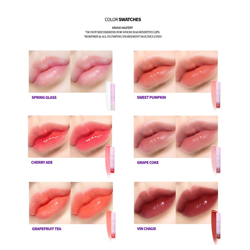 [Proved by Popularity in Korea, Japan] - Sold once a minute.(22.02.27) - Total sales exceeded 300,000 units. [Option Guide] - Lv1. Original : Normal Strength. But it's strong enough for general people. - Lv2. Master : Highest Strength. For those who don't get stimulated by any kind of plumper. Double the borpirin. Double effectiveness! - Lv3. Grand Master: Only recommend it for who are very familiar with lip plumper. Max lip filler effect. Added maximum amount of plumping ingredient.