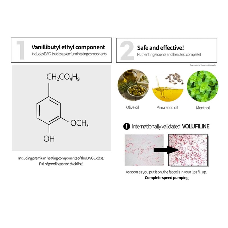 - [Extremely Powerful and Safe] Using EWG 1st-class premium heating component with FDA prescription. Moisturizing lip care, lip coat, and gloss effect last for 30 minutes to 2 hours. Safe volufiline plumper effect with FDA prescription materials
