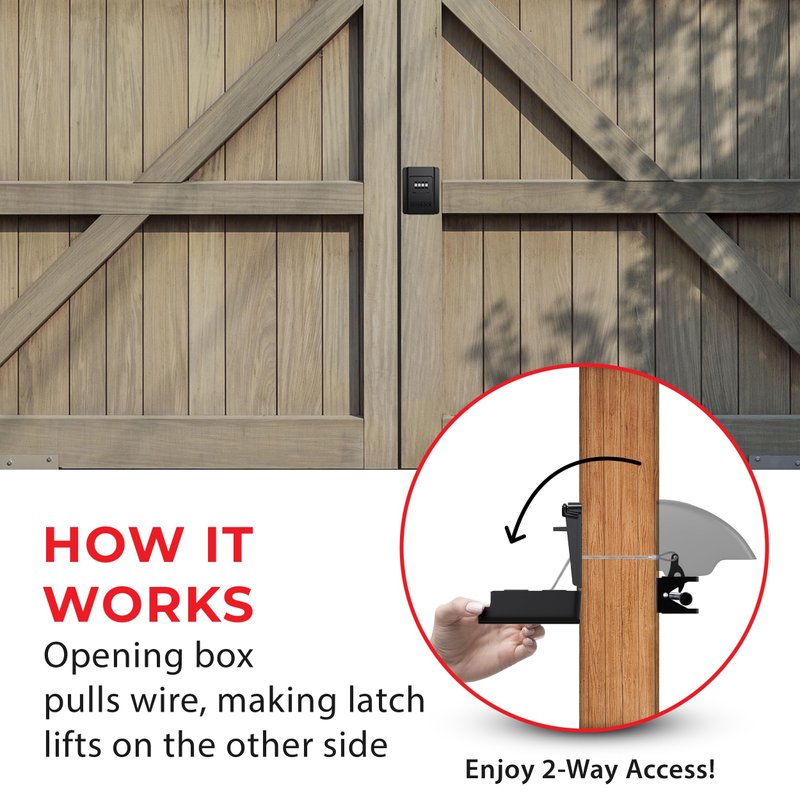 - HOW IT WORKS: Enter your own code to open the lock. Enjoy 2-way Keyless access! A wire drilled through the post lifts the latch on the other side. Inside the yard, simply lift the latch to open the gate.