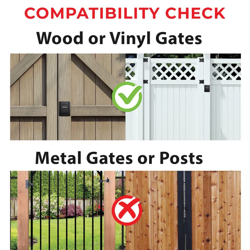 - DOES IT FIT MY GATE: Can be installed on wood of vinyl gates only. Works for gates swinging in toward yard side or out toward street side. See specific instructions in the installation guide.