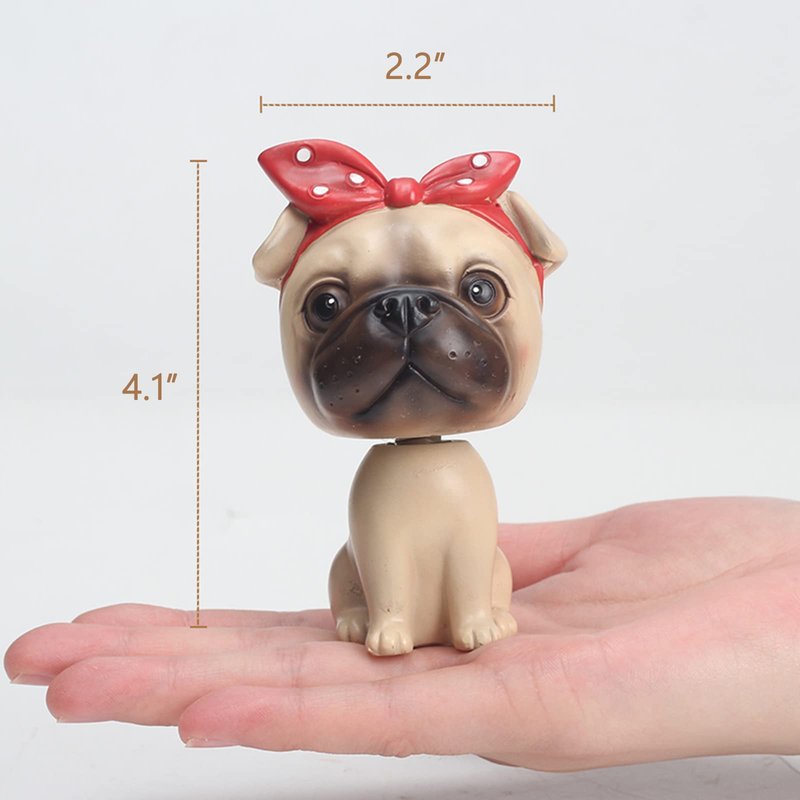 KEYUM Cute Bobble Head Dog Car Dashboard Decoration Mini Bobbleheads Pug Figurine Funny Shaking Head Dog Toy Animal Puppy Home Office Desktop Resin Ornaments