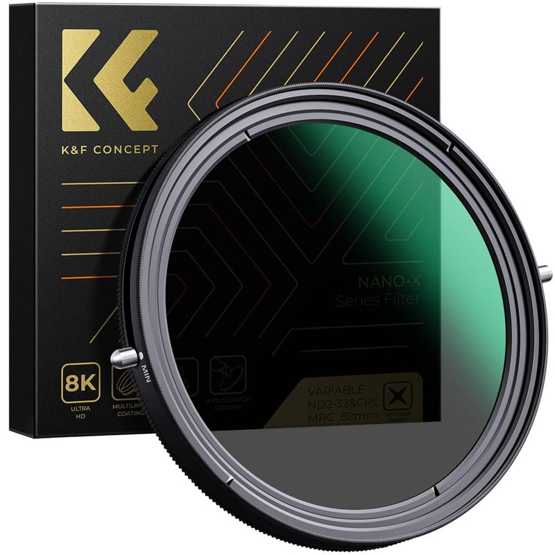 K&F Concept 82mm Variable Fader ND2-ND32 ND Filter and CPL Circular Polarizing Filter 2 in 1 for Camera Lens No X Spot Waterproof Scratch Resistant (Nano-X Series)