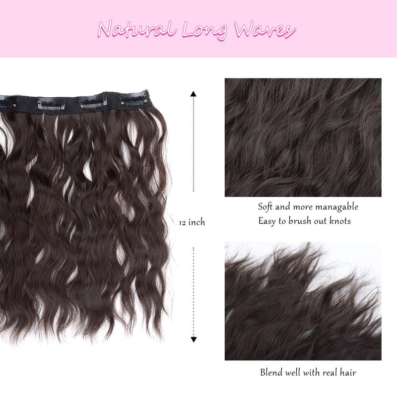 These high-quality,Dark Brown curly hair extensions are designed to seamlessly blend with your natural hair, giving you a glamorous and voluminous style in minutes.