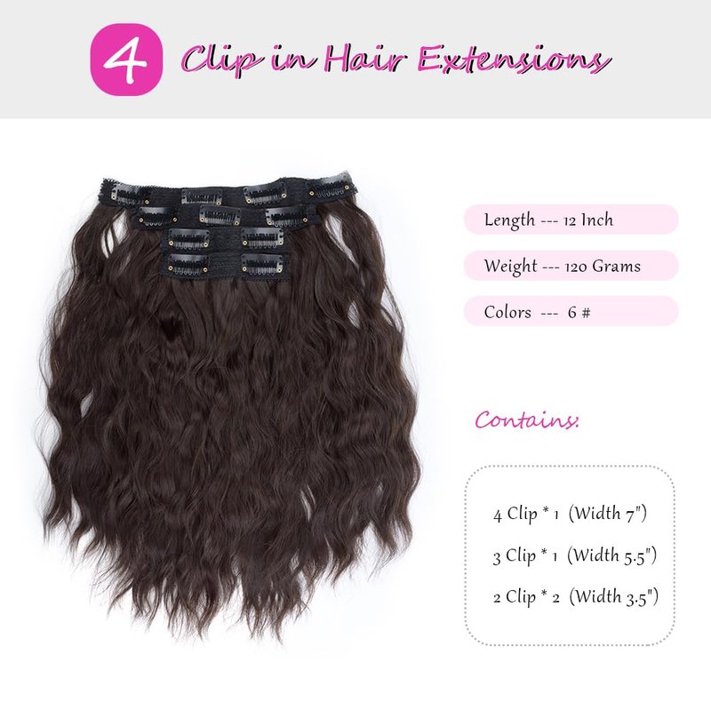 KGBFASS Hair extension 4 Piece Clip in Hair Extensions 12inch Short Curly Wavy Clip in on Hair Extensions Women's Full Head Synthetic Fiber Hairpieces 120g, Dark Brown
