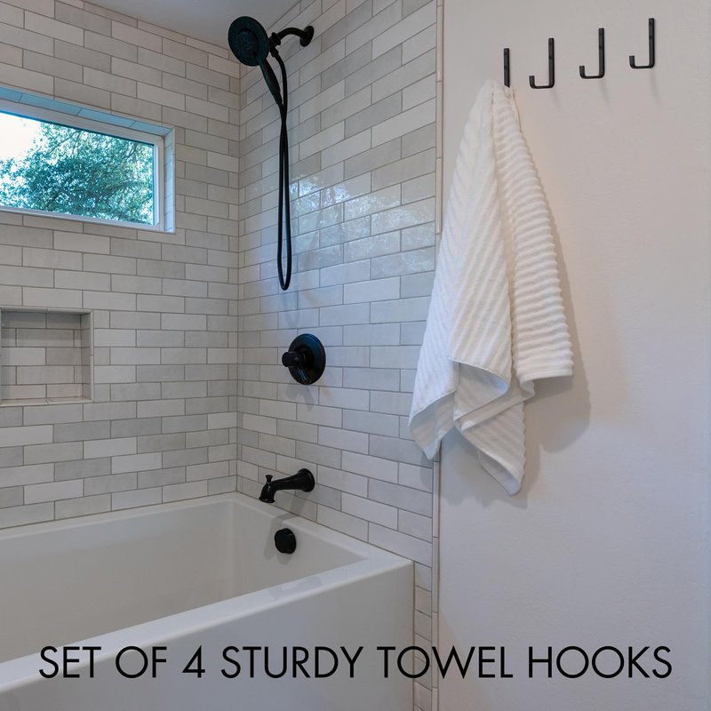 - Keep Your Bathroom Tidy & Organized - The Simple Way: Enjoy the simplicity and convenience that comes with the set of 4 towel black hook for your bathroom! The towel holders make it a breeze to use limited space in style, while keeping towels tidy and easy to access