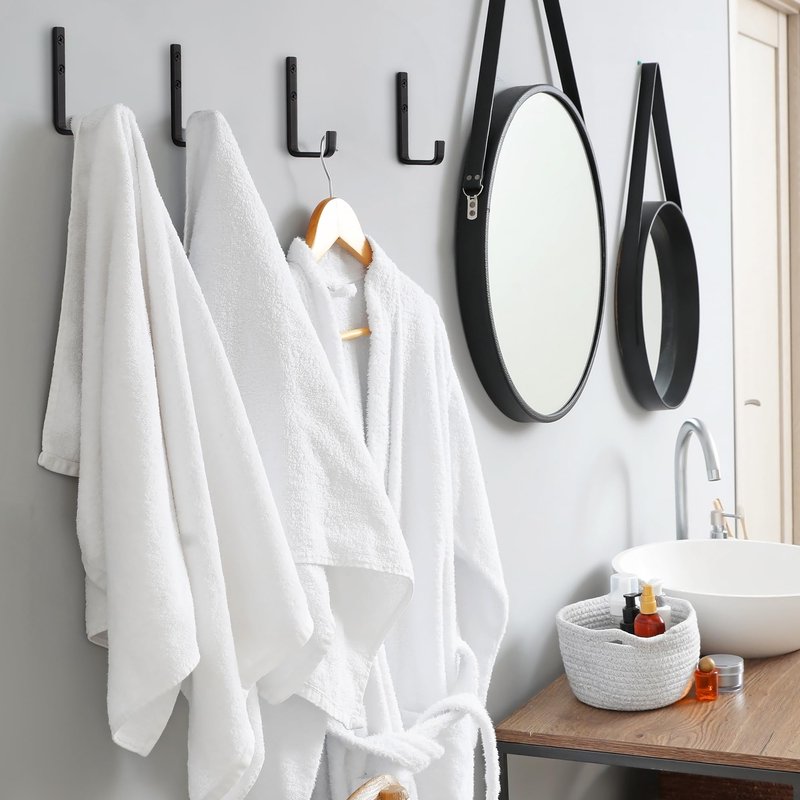 - Absolutely Sturdy & Made To Last: Each 3.6x2.3x0.5 inch bathroom towel holder is made of robust cast iron at 5mm thickness making the towel hooks your solid, durable solution for keeping large towels & more off the floor