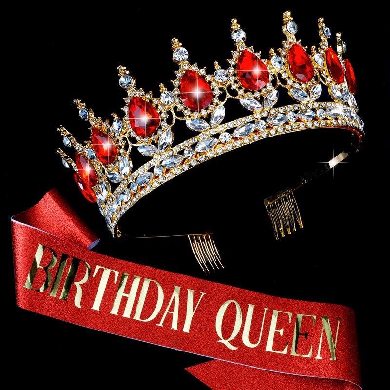 KICOSY Birthday Crown for Women Red Birthday Queen Sash and Crown Birthday Crown and Sash Happy Birthday Headband Birthday Tiara Birthday Crown Adult Woman