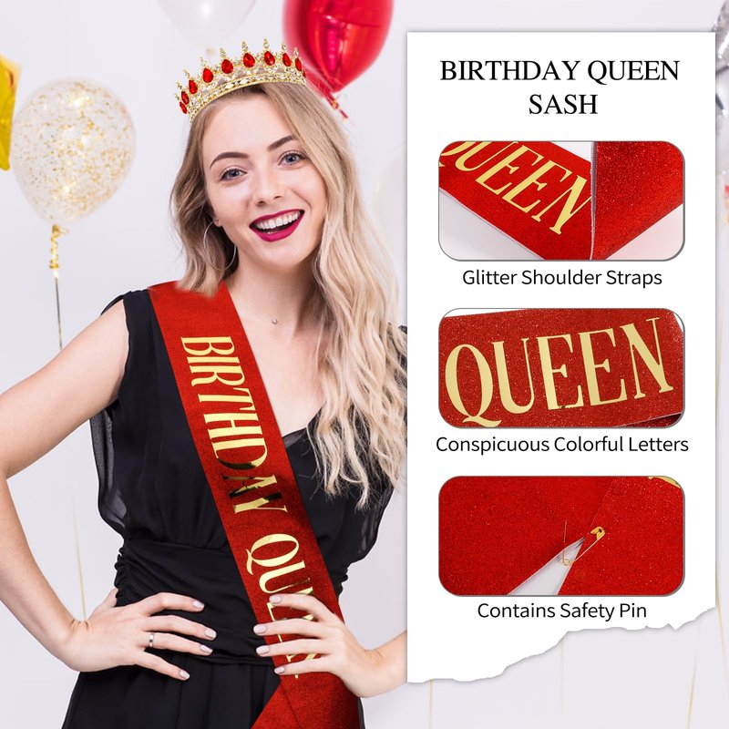 - 【👑PERFECT BIRTHDAY PARTY SET】: You will receive 1 piece sparkling crystal birthday tiara + 1 piece glittery "BIRTHDAY QUEEN" birthday sash + a safety pin. This will make your or her birthday a special and memorable one!