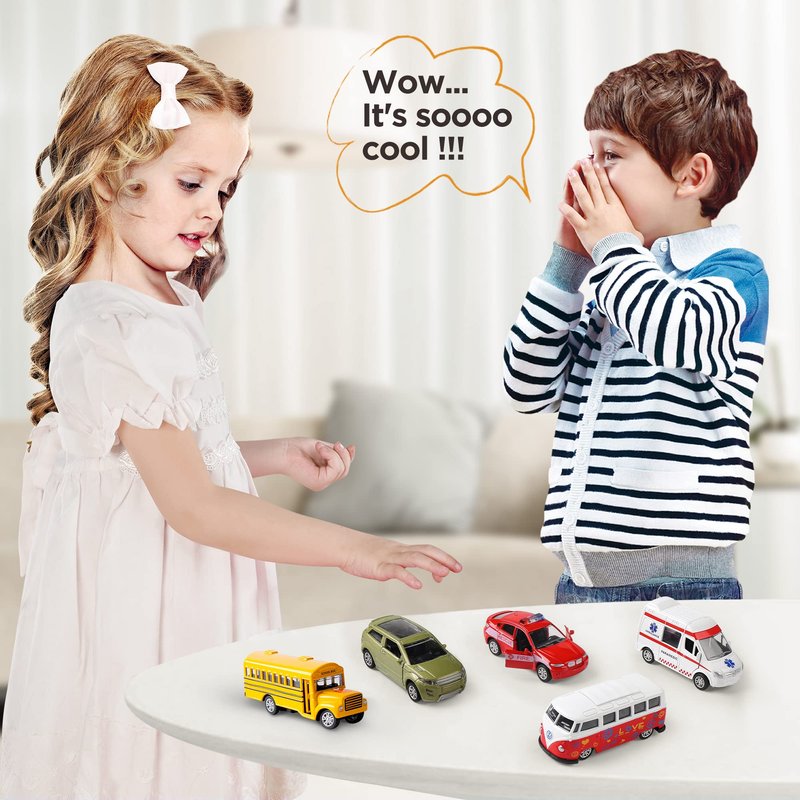- VIBRANT COLORS: Multiple types and vibrant colors. This gift pack includes lovely van, ambulance, school bus, police car and more