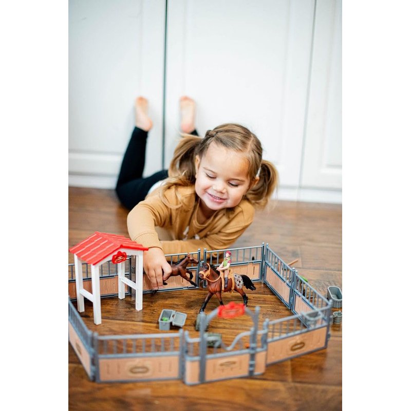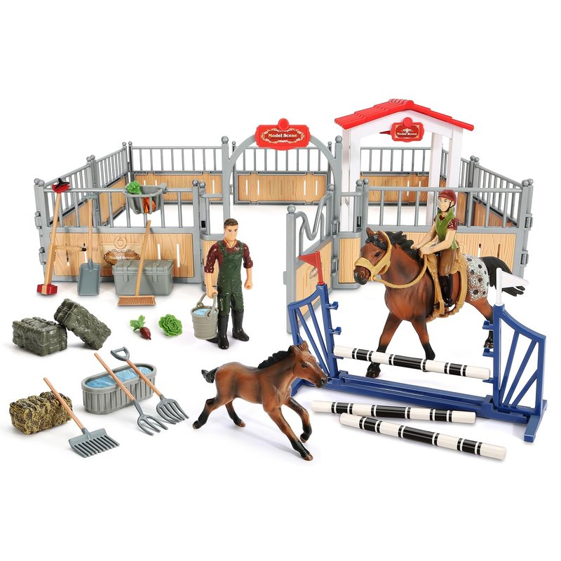 - Engaging Horse Toys Set: No kid can resist pretend play, especially horses and farm lovers. A smile beams on kids' faces as they see the lifelike Appalusama, Mustang foal, fine stable, and various tools. Step into a world of whimsical wonder with our 26pcs horse farm toys