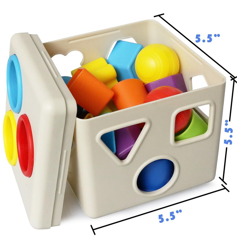 Educational Fun - Engages toddlers with shape and color activities that develop critical thinking, and fine motor skills as they fit each shape through its matching hole on the cube. 16-Piece Set - Features a vibrant assortment of 15 fun shapes in vivid colors, plus a sorting cube - endless fun and learning for your toddler