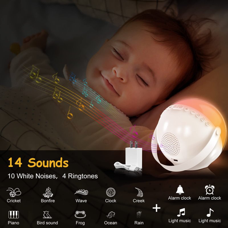 - 【Sleep Sound Machine】: The sounds can be used not only for alarm clock, but also for bedtime meditation. There are 14 soothing sounds, including nature sounds and music. The nature sounds are designed to imitate the natural environment. The sounds of raindrops, ocean waves, water flows, bonfires, birdsong, etc., make you feel as if you are in nature, relaxed and calm, which is conducive to midday naps or nighttime sleep.