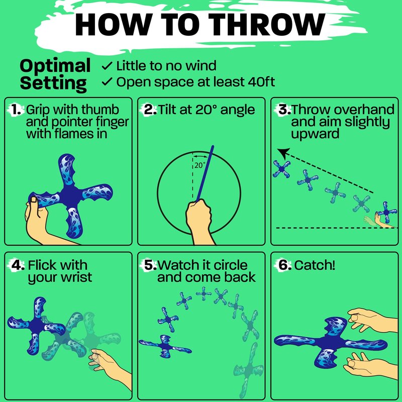 - ๐๐ฎ๐๐ ๐ง๐ผ ๐๐ฒ๐ฎ๐ฟ๐ป: Embrace the simple joy of throwing a boomerang and having it come back to you with ease. With our beginner-friendly easy to throw design crafted from durable EVA foam. It's stable flight and comfortable grip make throwing and catching a breeze, ensuring a quick and enjoyable learning experience for kids age 6 and up.