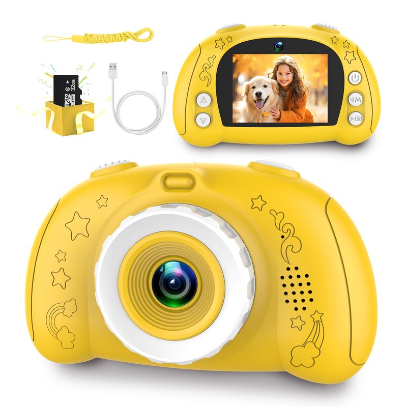 Kids Camera, Camera for Kids 3-12, Kids Digital Camera for Boys and Girls, with 32G SD Card, Toddler Camera with 2.4-Inch Screen for Kids at Birthday, Christmas (Pure Yellow)
