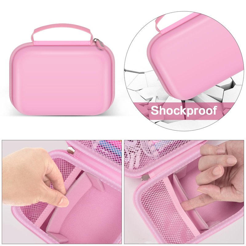 - Kid camera carrier with mesh pocket: Cámara instantánea case with zippered net pocket offers a safe and organized space for accessories such as color pen, charging cables, memory cards, and other essentials. The bright color scheme and smart design not only make the pink camera box visually appealing but also easy to spot in a crowded playground or at a family gathering