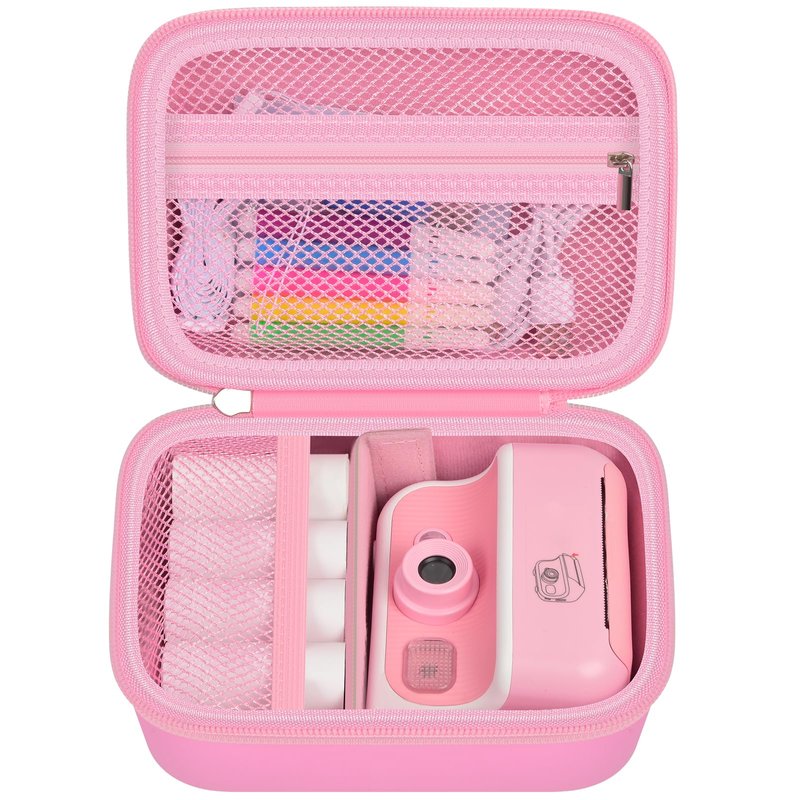- Portable camera holder with premium material: Made from superior, smooth, and wipe-clean fabric, kids camera instant print organizer is not just stylish but also practical. Camera instant print storage bag shields your child's photography equipment from accidental spills, and dirt. The durability of pink digital camera container is further enhanced by reinforced stitching and robust zippers, ensuring it can handle the active lifestyle of young photographers