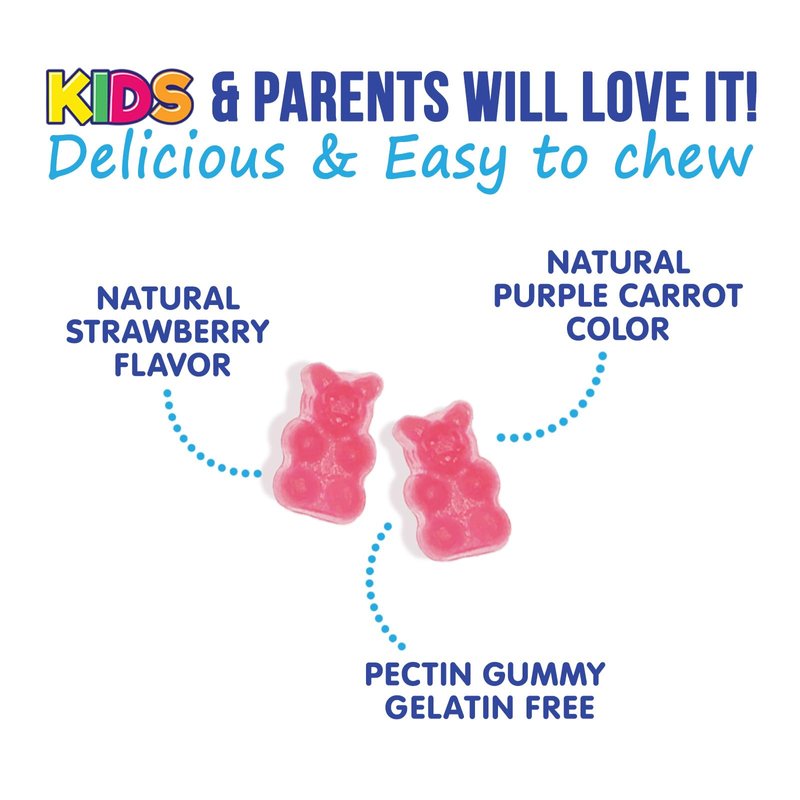 Kids Fiber Gummy Bears Supplement - Daily Prebiotic Fiber for Kids, Supports Regularity, Digestive Health & Immune Support, Nature's Plant Based Chicory Root Vitamins, Vegan, Berry Flavor Gummies