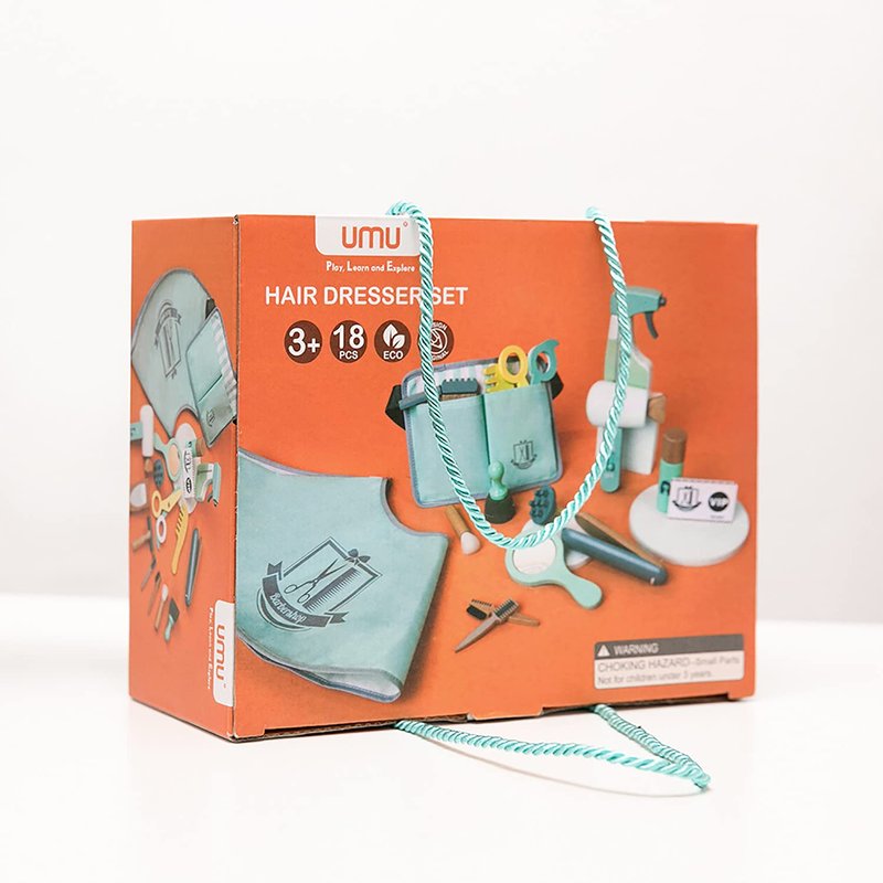 UMU Wooden Kids Barber Playset for Toddlers, Pretend Toy Classic Grooming Kit Barber Toolbox for 3, 4 and 5 Year Old Girls and Boys