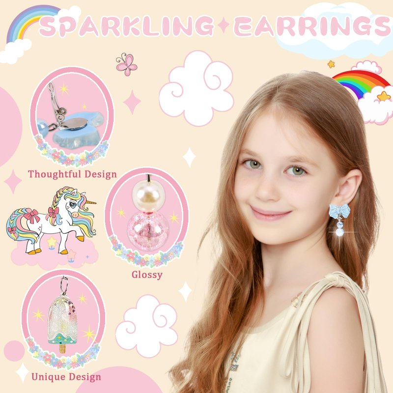 - Comfortable Clip on Earrings for Girls:Suitable for all cute girls without pierced ears! Toddler girls toy clip on earrings are comfortable to wear! Kids clip on earrings no pain and no squeezing! Little girl earrings are made of lightweight, kids earring high quality material and are comfortable to wear on small ears, clip on earrings for kids joy. wonder and fun little treasures for kids