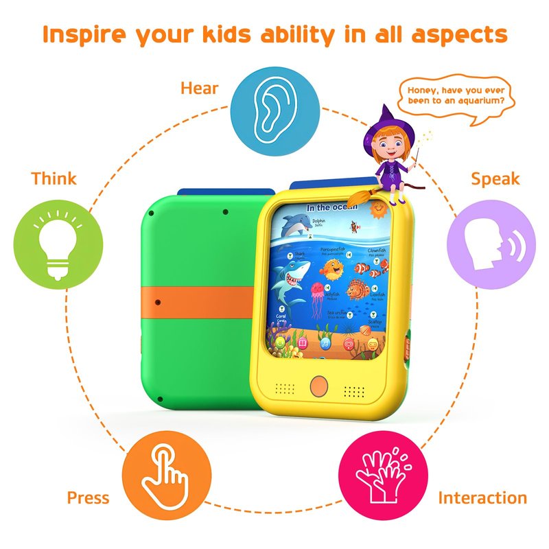 - 【5 Learning Modes】Word Learning-helping the little one develop foundational skills such as language, vocabulary, listening, and pronunciation; Language Switch-enhancing children’s bilingual ability and language communication skills; Amazing Sounds-Explore various interesting sounds and fun facts around the world; Basic and Advanced Quizzes-Interactive games to increase children's engagement and enjoyment in learning.